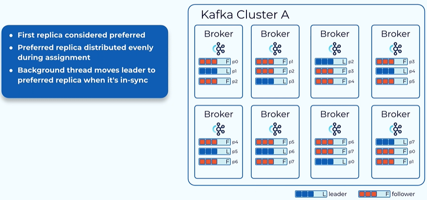 When we assign the preferred replica we try to assign it such a way that the preferred replica will be distributed evenly among all of those brokers.
